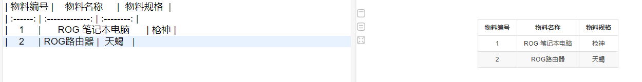 物料编号 | 物料名称 | 物料规格 |