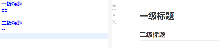 使用 = 可以创建一级标题,使用-可以创建二级标题。