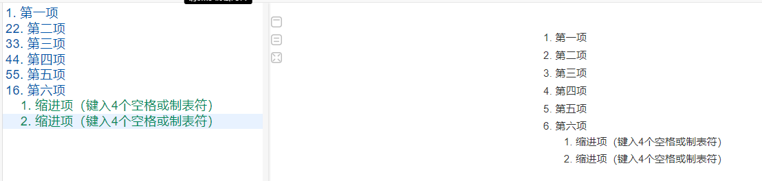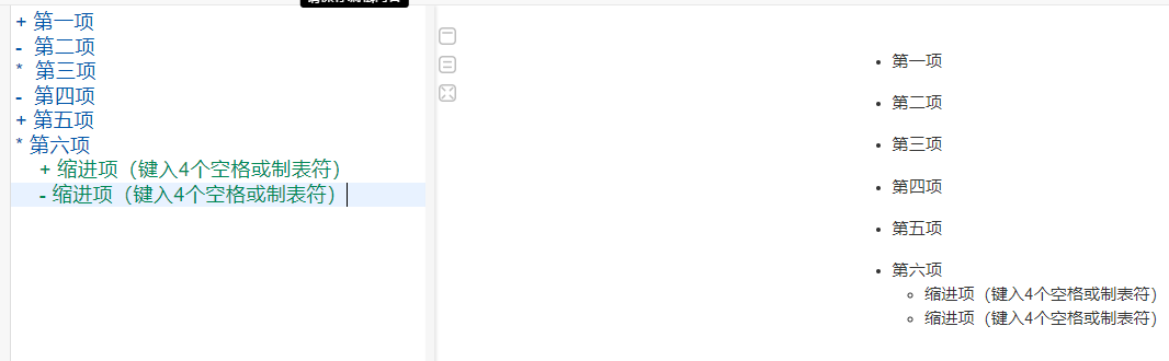 支持有序列表和无序列表。